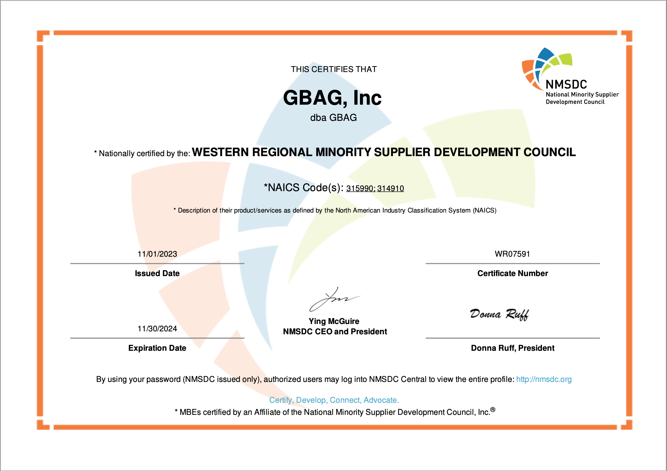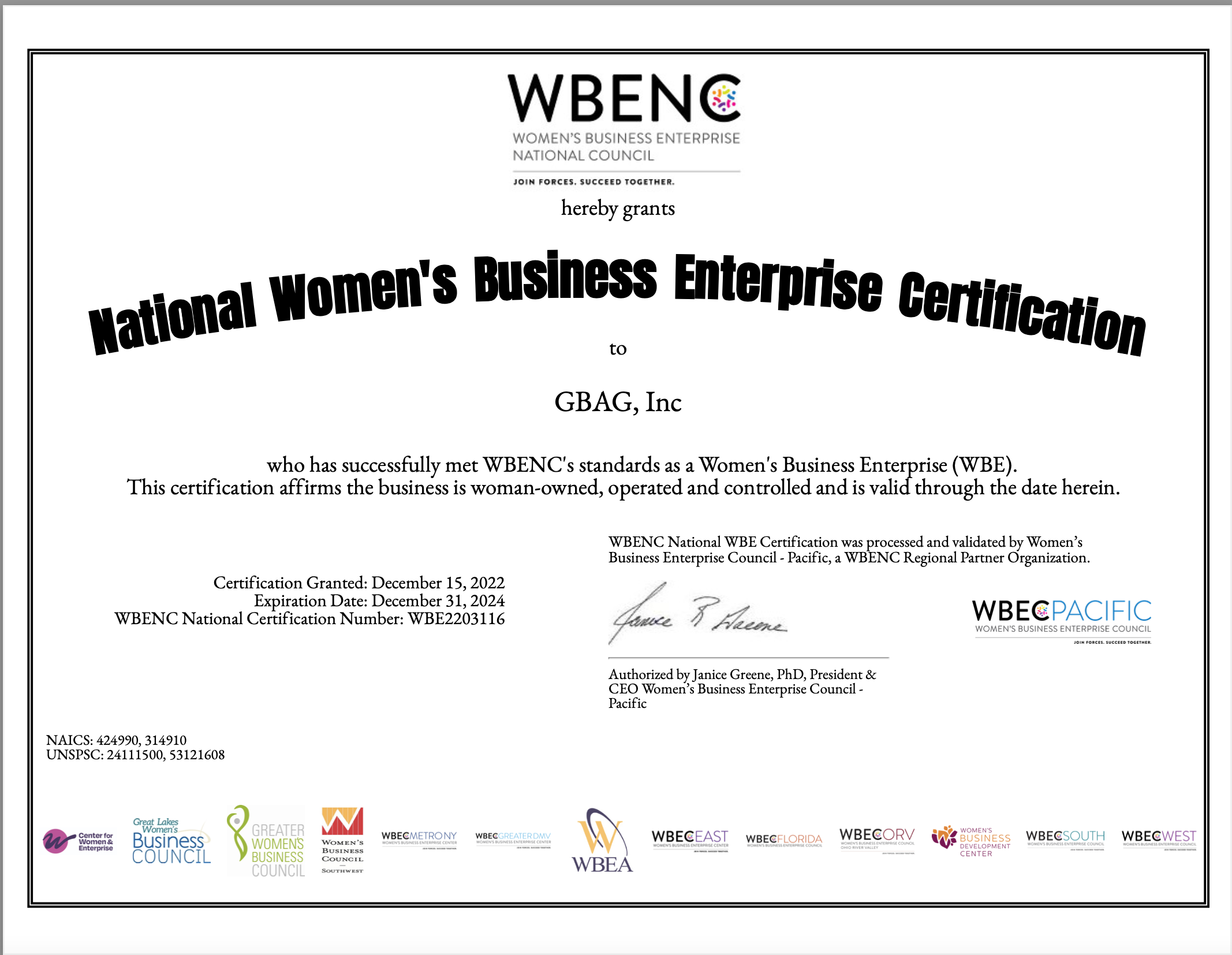 MBE Certificate / WBE Certificate